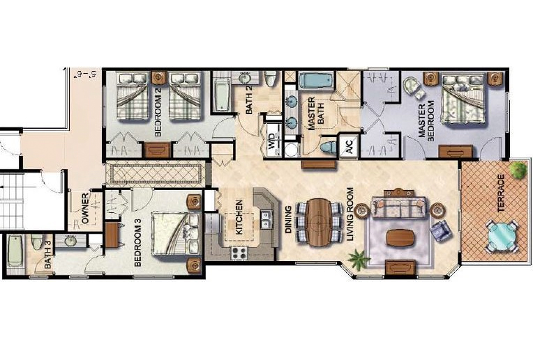 This large 1,755 sq ft ground floor luxury corner unit is located close to the center of Reunion offering convenience and luxury in a peaceful landscaped setting. The porch faces a secluded green that backs onto the preserve where children can spread out and play.