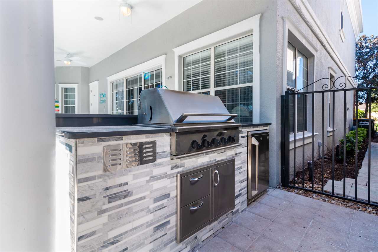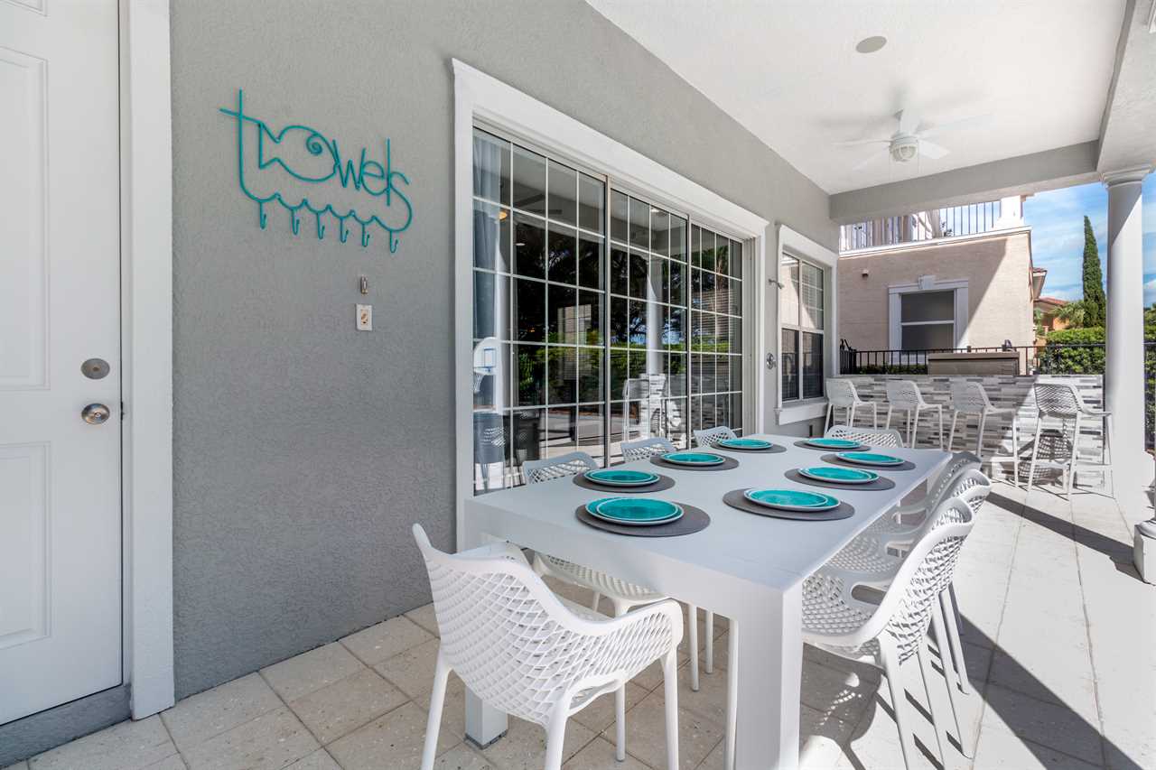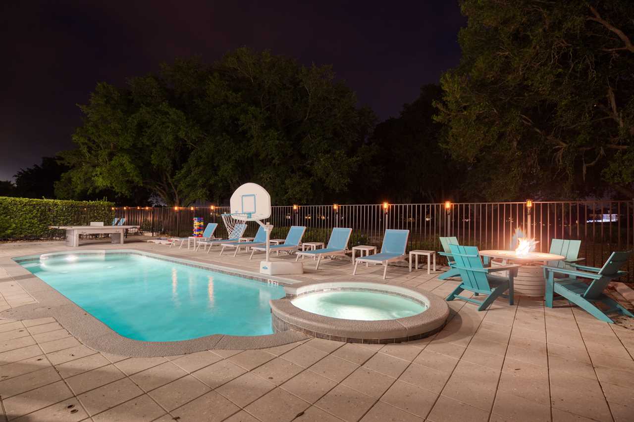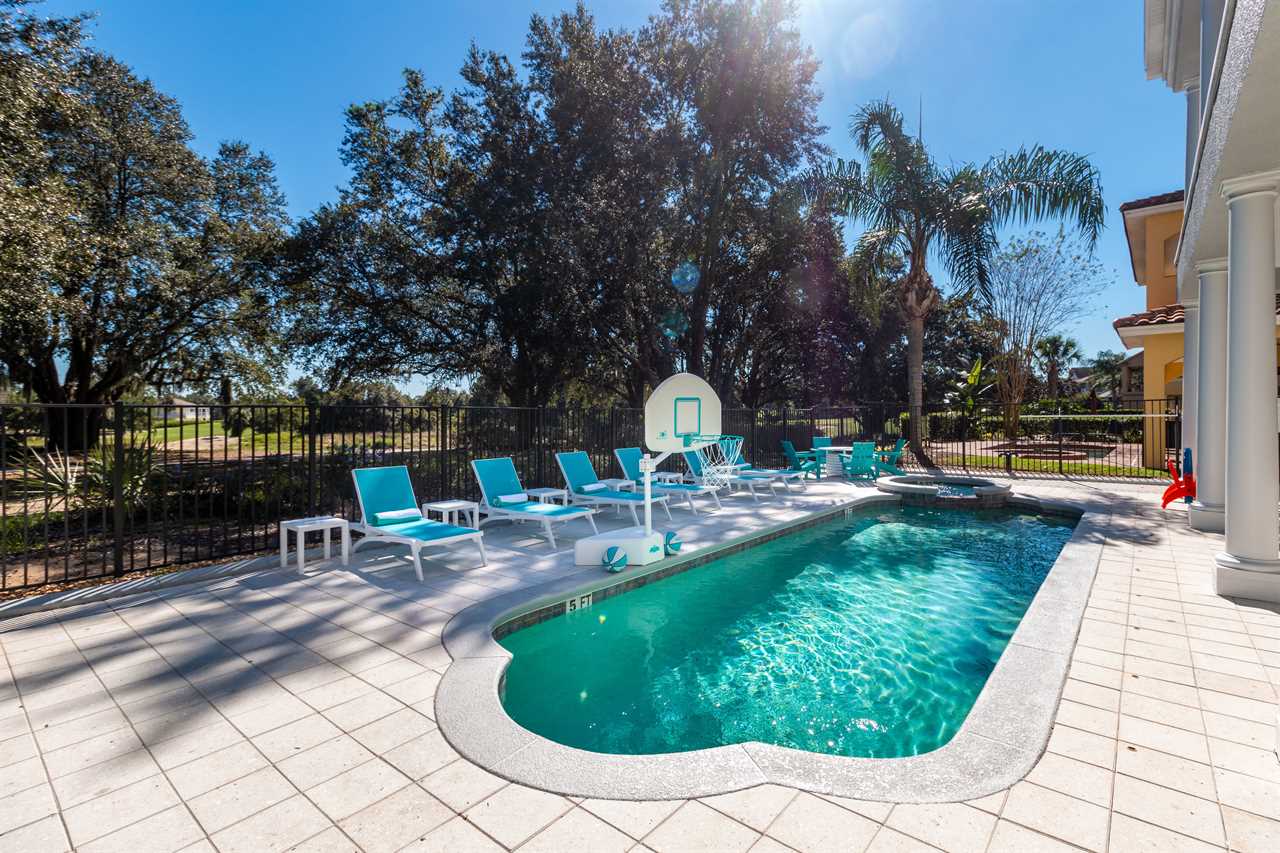 Step out onto your private lanai, grill up a great lunch with the BBQ and enjoy your meal at your outdoor patio table that seats 8. Relax in the large pool and spa and take in the Florida sun on any of the 6 sun loungers. There is a pool alarm as well as an optional pool fence and self-closing gate for your peace of mind traveling with little ones. For your convenience, you will find an outdoor poolside bathroom, and shower. Want to gather around in the evening? The home also offers a propane firepit. For fun, you will also find a Cornilleau outdoor ping pong table, pool basketball, giant Jenga and 4-in-a row game.