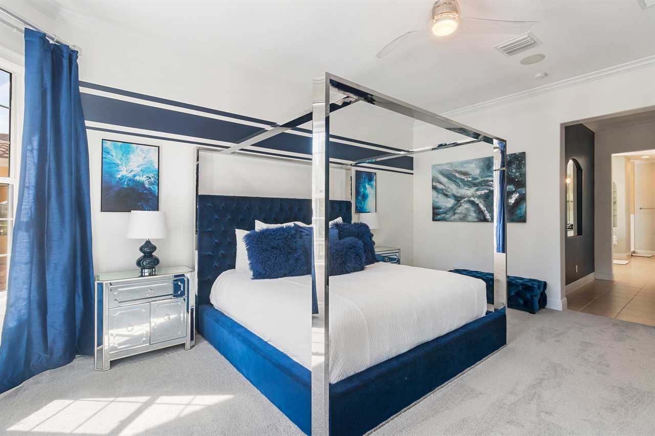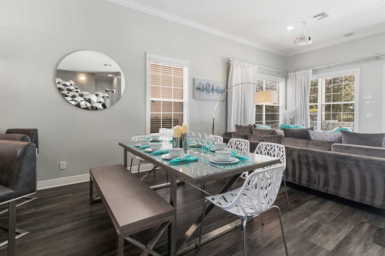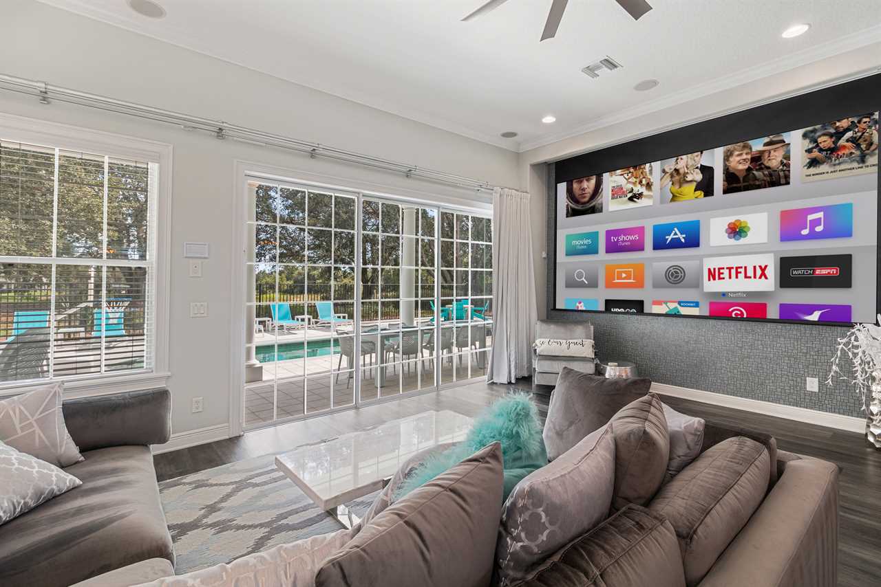As you walk into this home you are greeted by natural light and an open concept layout. Your living space is simply perfect for the family vacation with an open floor plan, allowing the entire family to cook, dine and hang out. You will love the massive kitchen with beautiful grey granite countertops. Experience the magic in the evenings and watch a Disney movie or two on your very own 75-Inch, 4K SMART TV and an electric drop-down 150-Inch projector screen with an upgraded cable package. Enjoy your comfy sectionals that seat 8 and a beautiful dining area that comfortably seats 10.