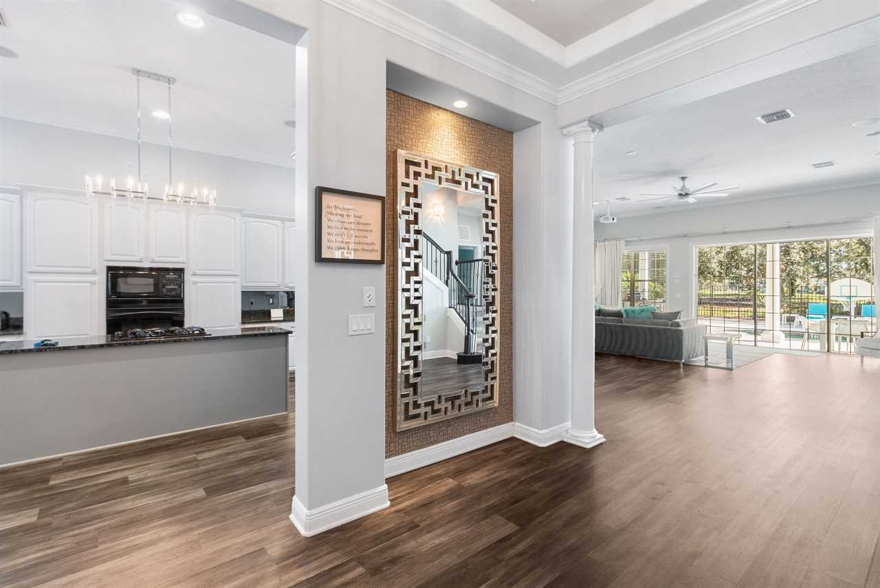 This beautiful home is situated in the Homestead neighborhood within the prestigious Reunion Resort. The great location within the Resort allows for easy access to amenities such as the restaurants, pool, The Grande, and the Seven Eagles pool and Pavilion, all just 0.5 miles away. The home is also only 300 ft. from the Homestead community pool. The rear of the home has a spacious balcony offering stunning views of the famous Tom Watson Independence course.