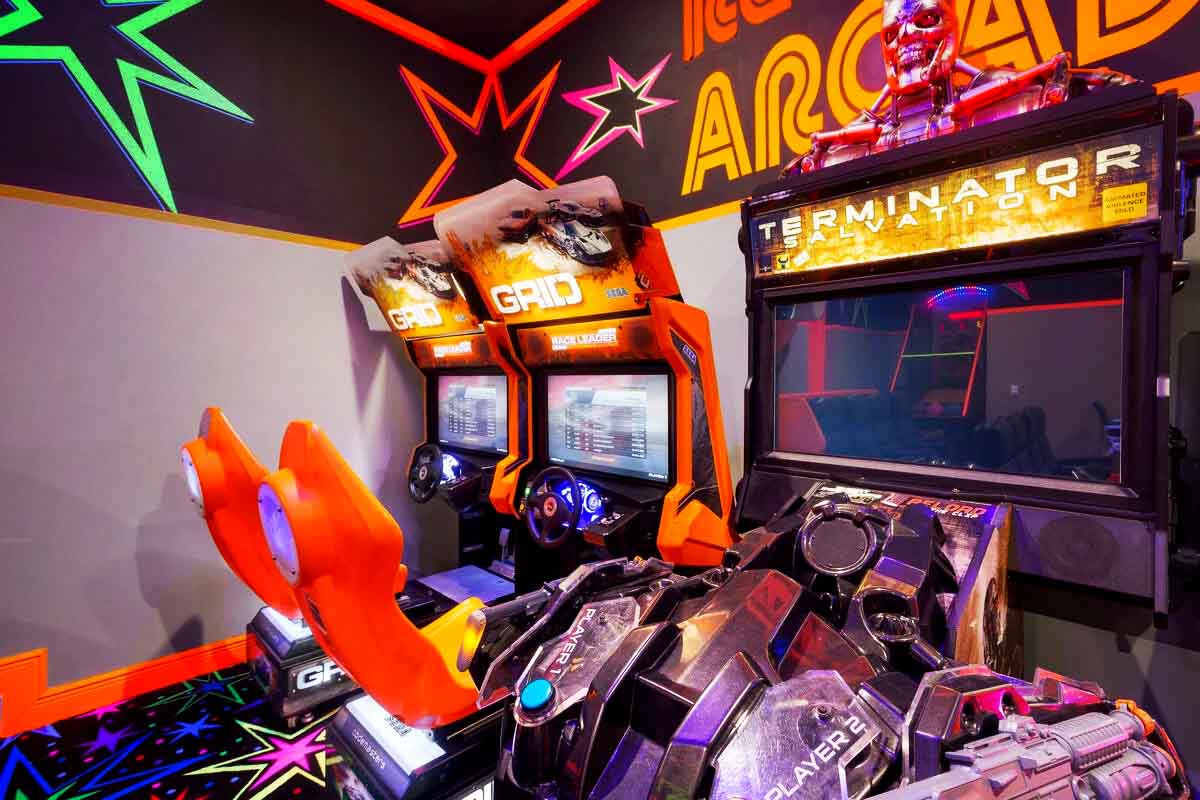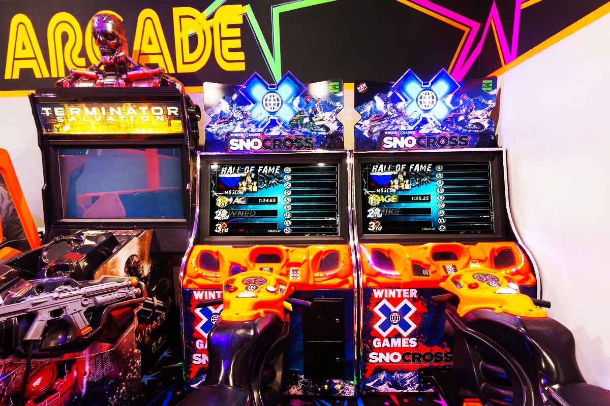 $60,000 worth of arcades. 2 sit-down sync snowcross, 2 sit-down sync Sega racers, Terminator Salvation 2 player arcade, Minion wacker arcade, Multi-Arcade, and a basketball arcade