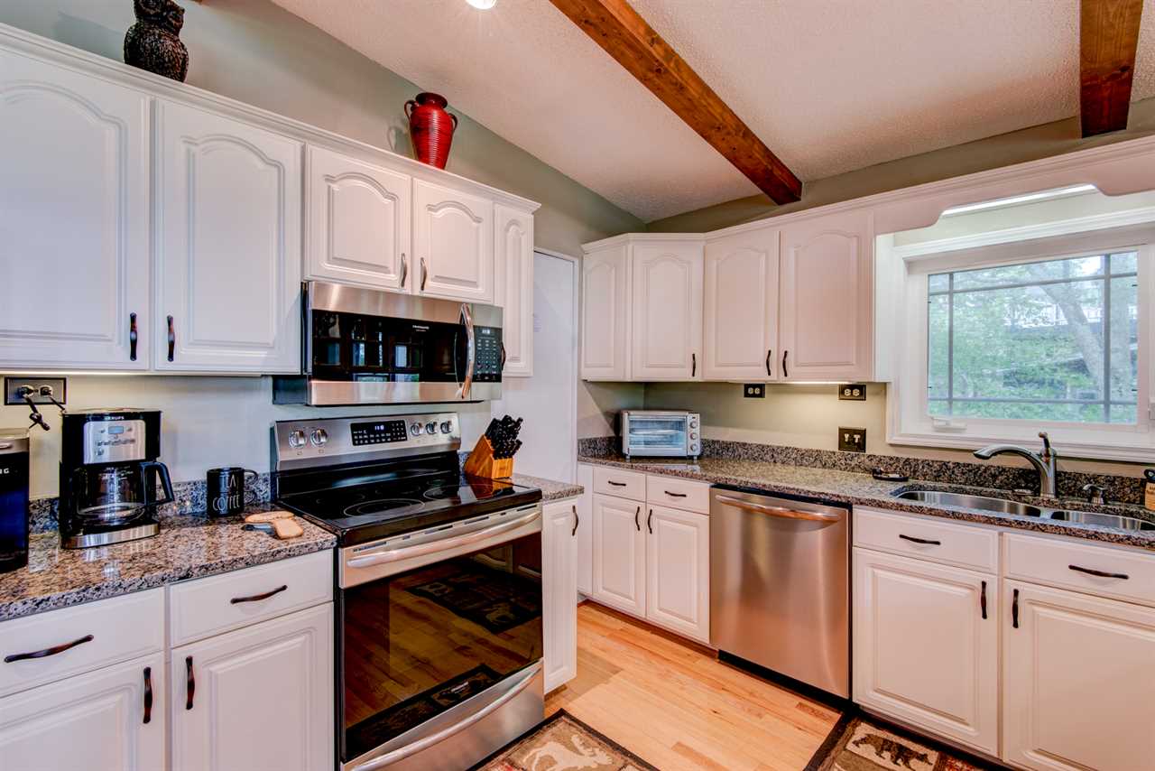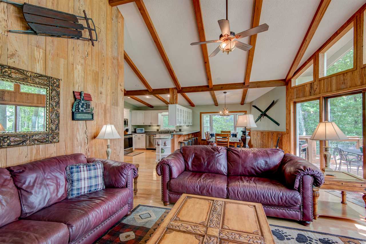 The top level features your main living area, with updated granite counters, wine cooler, and both a Keurig and standard coffee makers. The dining table comfortably seats six, and there are four barstools at the counter. Off of this area opens to the living room. Oversized leather sofas surround the gas log fireplace and TV. The newly built decks outside overlook the greens. Soak in the brand new hot tub! Head to the opposite decks to catch some of the best sunsets on Beech!