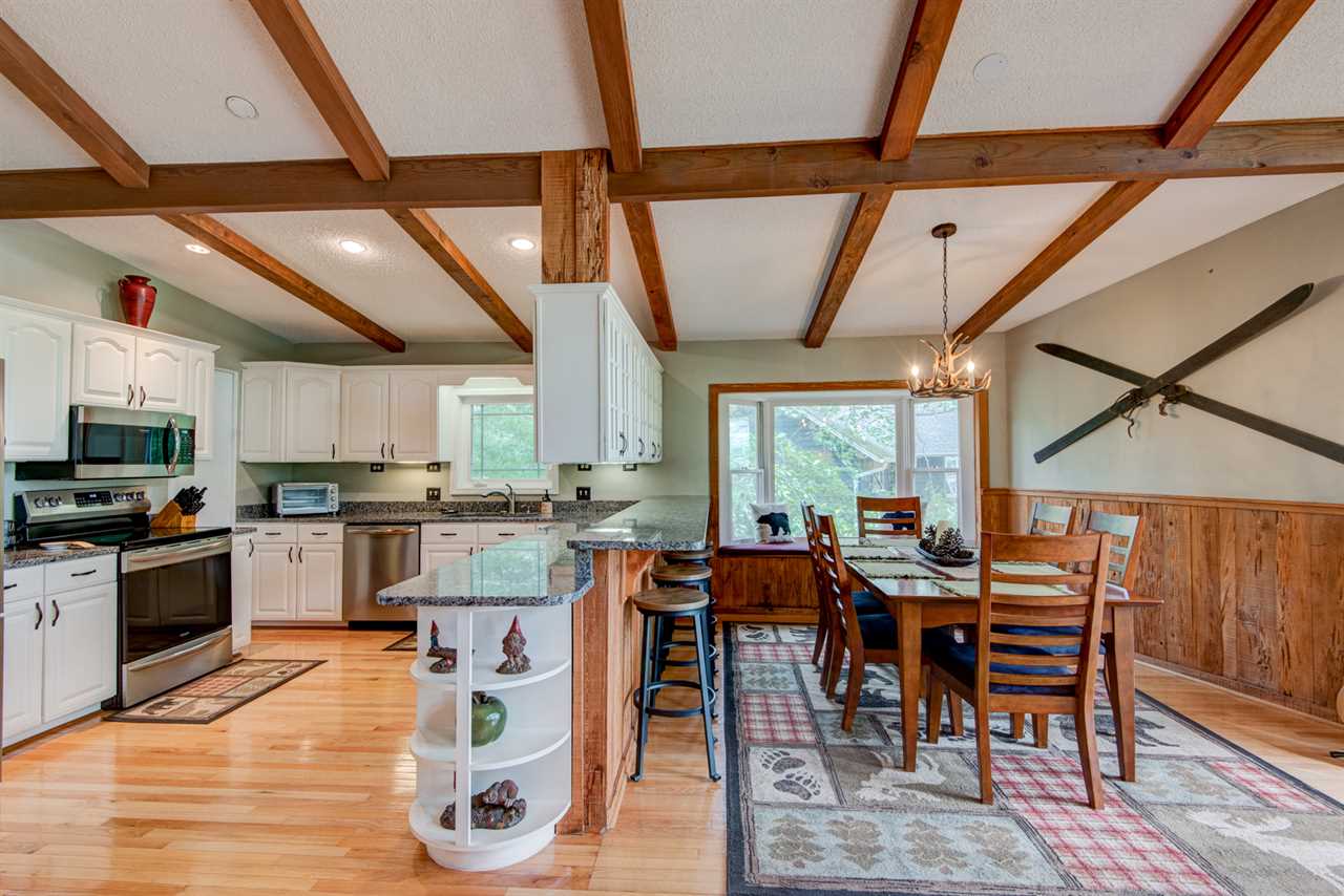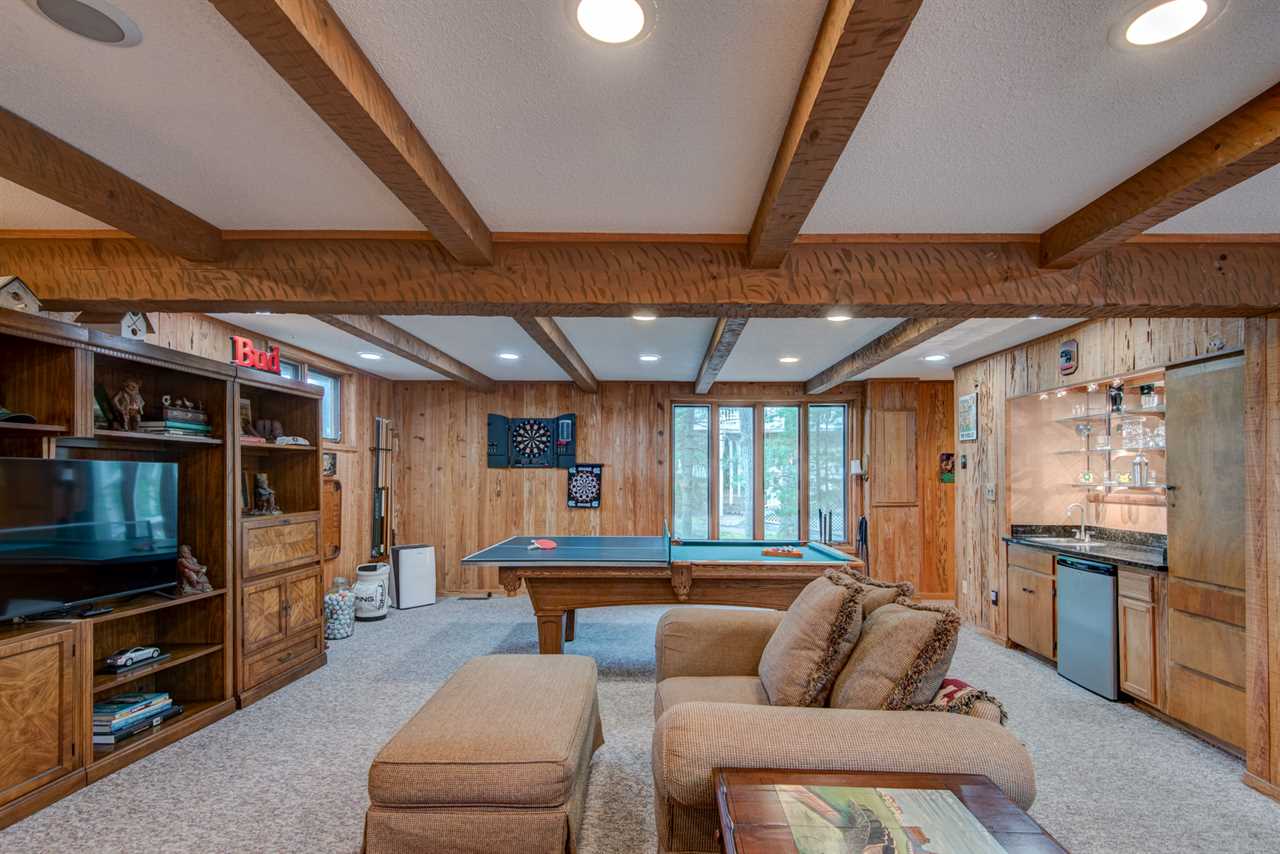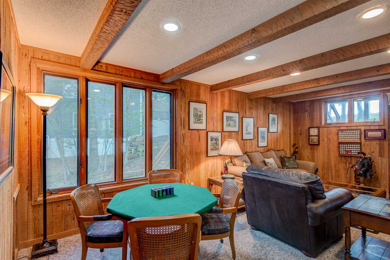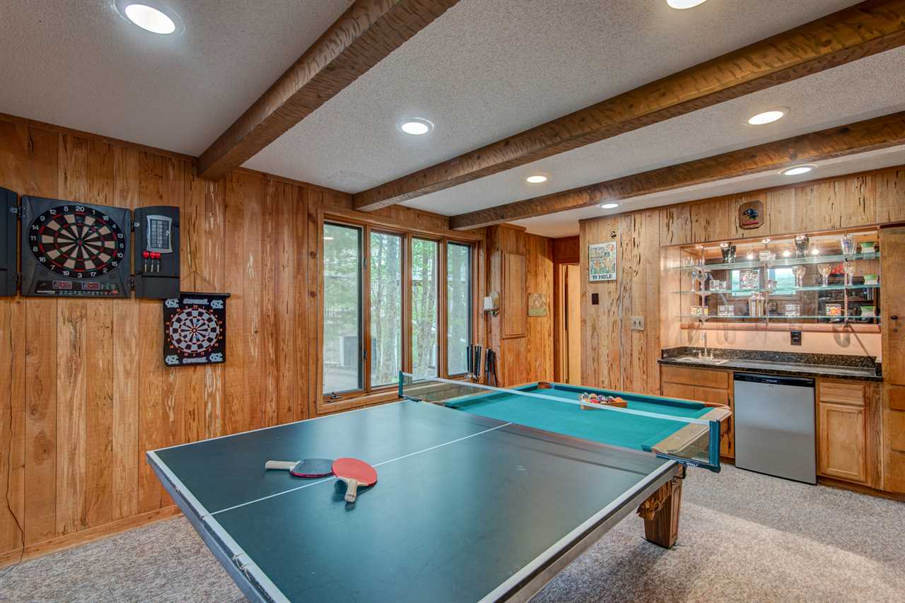 This newly updated home overlooks the 11th green of the Beech Mountain Golf Course to the east and sunset views to the west. On the ground level there is a large game room with pool table, ping pong topper, and poker table. The TV has a DVD player and firestick, so log into your favourite apps and stay on top of your shows or team as you relax on the sofa or chairs. The wet bar and fridge make it easy to entertain, and the half bath with granite counters is around the corner for convenience.
