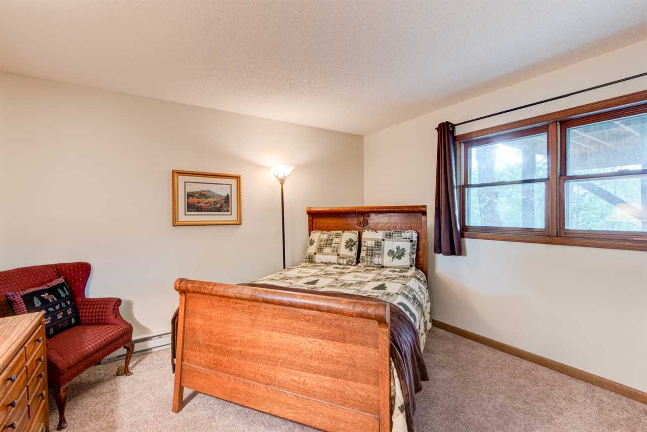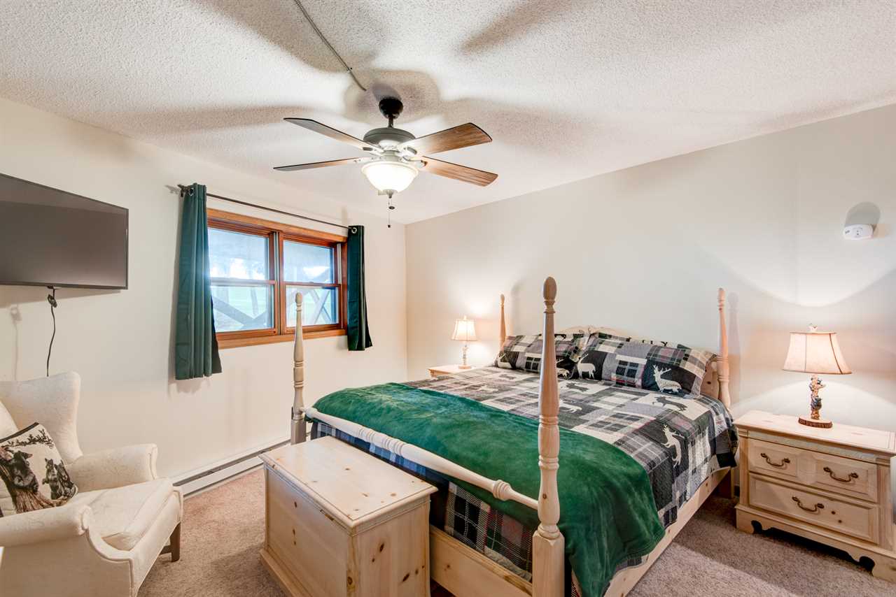 Head up to the middle level where you'll find three of the four bedrooms. The king suite has a private bath with a tiled combination tub/shower. The queen bedroom and room with two twins share a second full bath, also with a tiled combination tub/shower.