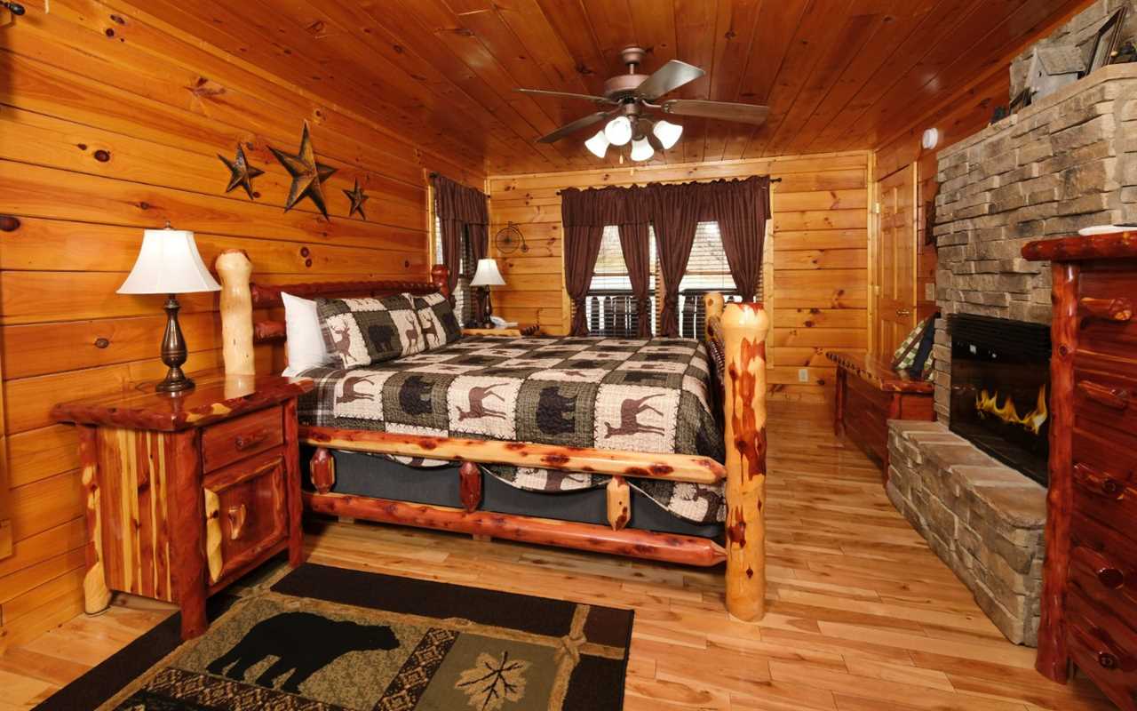 • KING BEDROOM WITH STACKED-STONE FIREPLACE