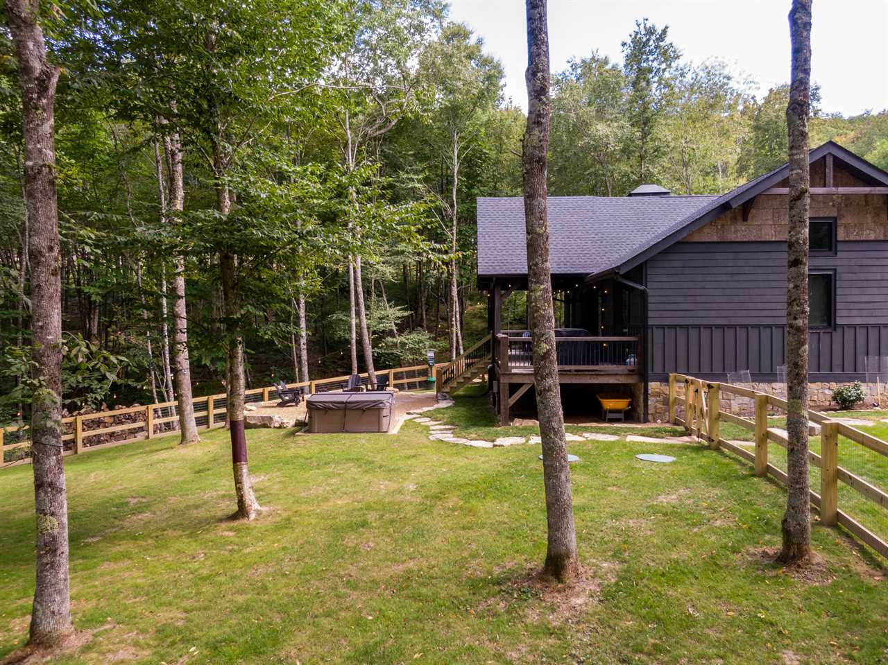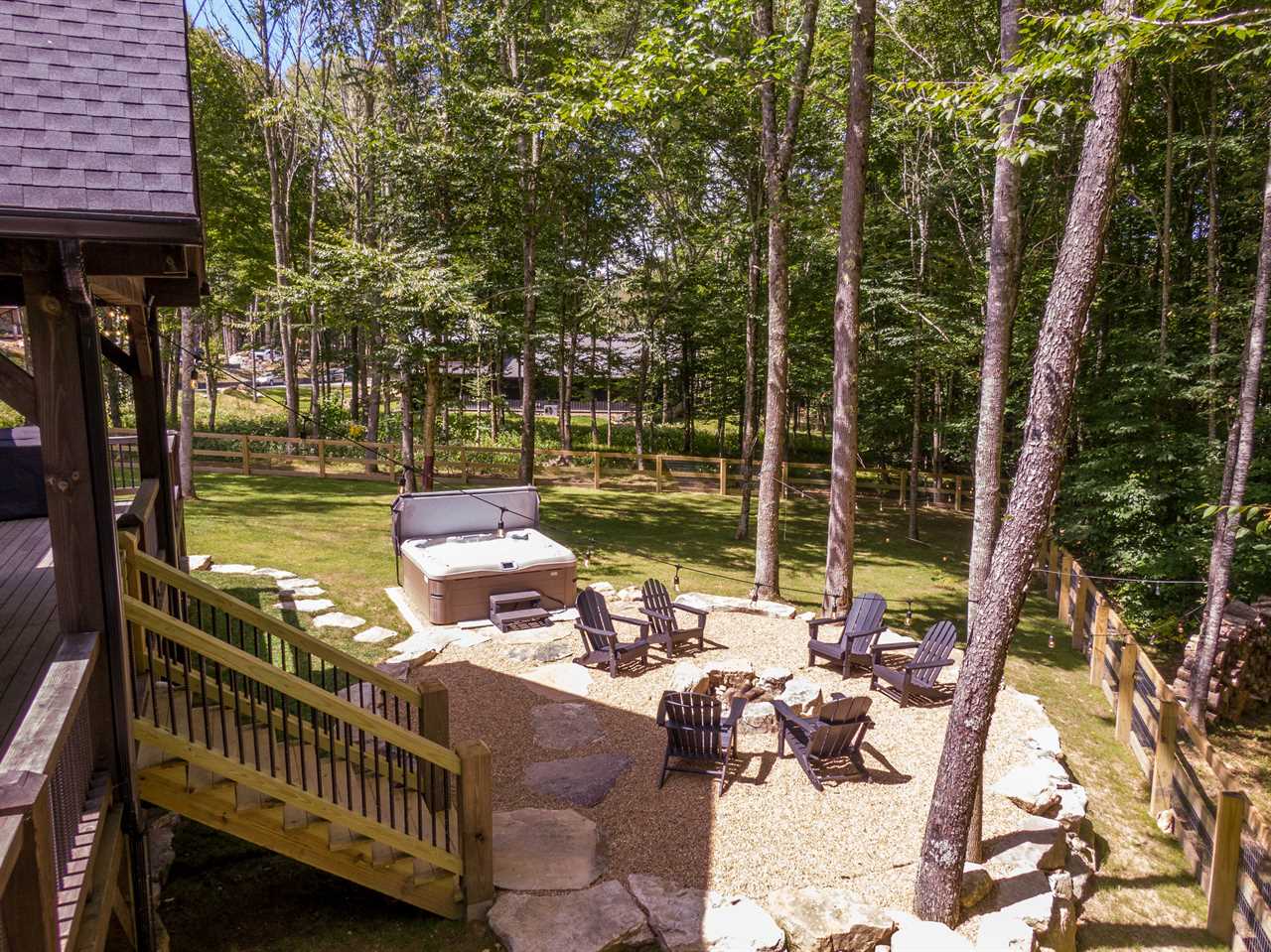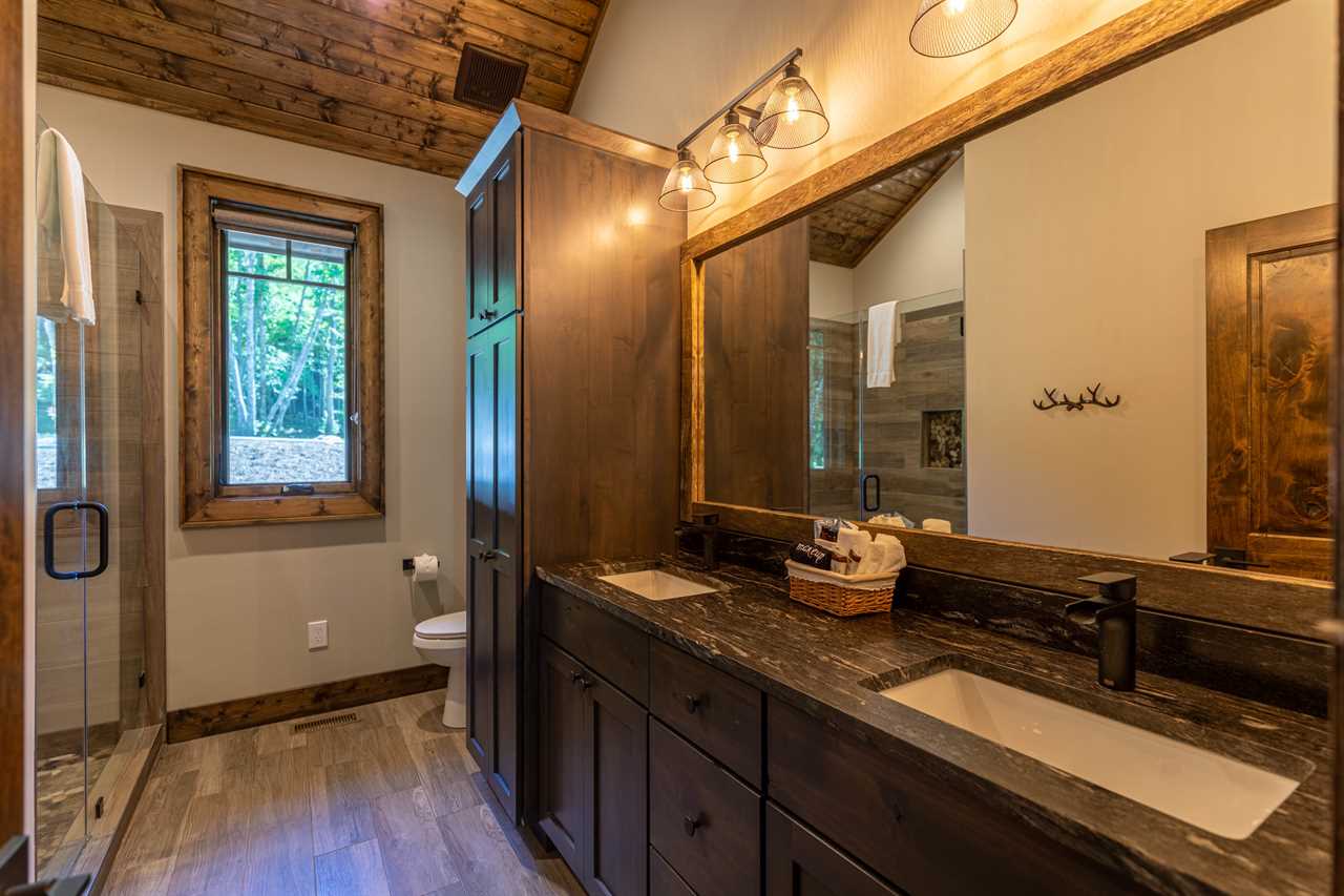 Welcome to BaseCamp, a beautiful home in the Springs of Eagles Nest near the creek. The charming kitchen is well stocked to prepare a meal for yourself and friends. The open floor plan allows you to prepare a meal while still enjoying your friends in the living area. The gas log fireplace and smart TV are ready for entertaining. The comfortable sofa also doubles as a TemperPedic queen sleeper sofa allowing up to six guests in the home. Two ensuites are on either side of the home for privacy. Each has a king bed, a smart TV, and a luxurious, full bath. One features a walk in tiled shower, the other a tiled tub/shower combo. Off the kitchen is a half bath and separate laundry center. On the back deck, you'll enjoy a serene, wooded yard with a fire pit; it's the perfect spot for a morning cup of tea or coffee from the Keurig! The backyard is fenced in and includes a hot tub. Located directly between Great Camp and the North Pavilion area of Eagles Nest, this home is in close proximity to the most popular amenities in the community. Eagles Nest offers great hiking trails that can either be hiked by foot or explored by ATV... some leading to beautiful waterfalls! There's something for everyone. For a list of available Eagles Nest amenities please see below. While enjoying your stay at BaseCamp, you have access to most amenities inside of Eagles Nest. Amenities available to you include: Great Camp: BBQ Pavilion Amphitheater (location of summer concerts from May to the end of November) The Great Lawn Playground Hiking Trails Ropes Course and Climbing Tower (seasonal) Mini-Golf Course 24/7 General Store North Pavilion: Ball Field Sportsmans Lodge (unlocked portion only) Sports Court (Basketball and Pickleball) Dog Park Walking Trail Sportsman's Grille (Wed-Sun. Hours vary) Fire Pit Woodland Trail System (ATV Trails, Hiking, Biking) Camp (BYO Equipment): Tennis Courts Pickleball Disk Golf Archery (Restrooms and Pavilion coming soon!) Vineyard Food and Wine served Eagles Nest Winery day passes are available onsite for $25.00 each HOURS: Thur & Fri 4p-10p. Sat & Sun 1p-7p Please note all visitors on premise at the Winery must be 16 years or older. This is strictly enforced. Guest do not have access to the locked off portion of the Sportsman's Lodge, the Fitness Center, or the Wine & Cigar Bar. That is for member use only. AAdditional Notes: - Please note there is a loft area in the second bedroom that is accessed via ladder. This area is not for guest use. - Firewood for the firepit may be added by at the time of booking or by reaching out to us more than a week in advance. You get two wrapped bundles and a firestarter for $25/night plus tax. - Guests are responsible for supplying their own recreational equipment (basketballs, soccer balls, tennis equipment etc.) - The summer concerts are open to all guests however there may be an admission fee for each person - Guests are not allowed to bring their own ATV's. For information about ATV rentals please visit: Off Road Adventures website - Please note that this homeowner uses outdoor surveillance cameras to monitor their home's security(entryway and parking area). No cameras monitor the inside of the home. - All Eagles Nest homes have an additional amenity fee in order to maintain the luxurious amenities - Please note that the community of Eagles Nest has construction going on. Due to how sound travels, during weekdays you may hear heavy vehicles traveling on the development's roads. - Please note that all Eagles Nest homes have internet, but some areas of travel may not have cell reception. - All BRMR homes offer well stocked kitchens with all utensils needed to cook meals. There is also a "starter set" of paper products at the house: a roll of toilet paper per bath, several garbage bags, a small vial of dishwashing liquid, a few tablets of dishwasher detergent, some laundry pods, a roll of paper towels, hand soap, shampoo, conditioner, body wash, and some makeup remover cloths. There are enough of these items for one night, or maybe two. We do not provide hair dryers. Towels and linens will be provided. - Check in is after 4pm and Checkout is by 10am - Must electronically sign an additional Rental Agreement Terms and Conditions and any Neighborhood Rules sent by Host (property manager) or entry information cannot be sent. - Must be at least 25 years old to reserve. This person is required to be the person signing the agreement and must be one of the persons staying in the property for the reserved dates. - No smoking inside the home. No trace of smoking left outside the home. - Do not leave food or trash outside as it could attract animals. All trash must be bagged and placed in the trash receptacle indicated in the Welcome Book inside the house or your digital guidebook. - No parties or gatherings above the posted occupancy allowed at any time. Keep outside noise respectable. - 4WD/AWD and/or chains recommended during winter (Nov-March) for all homes. Travelers visiting during the winter months where inclement weather may be possible should come prepared with an AWD or 4WD vehicle, and chains may also be required if it snows. No refunds, allowances, or date changes will be given to travelers who are not prepared with the proper vehicle, as outlined in the Rental Agreement. - This home allows up to 2 mature, well-trained dogs with an additional pet rent of $25 per pet per night plus tax. Pets other than dogs are not permitted. CANCELLATION POLICY - Bookings canceled 30+ days before arrival will receive a refund of the deposit. Bookings canceled between 15-29 days before arrival will receive a refund of half of he deposit. Bookings canceled within 14 days of arrival are not entitled to a refund unless the reservation dates are rebooked to another guest. ​​​​​​​All bookings are subject to a $50 cancellation fee. NCREC Broker Name: Blue Ridge Mountain Rentals NCREC License Number: 29198