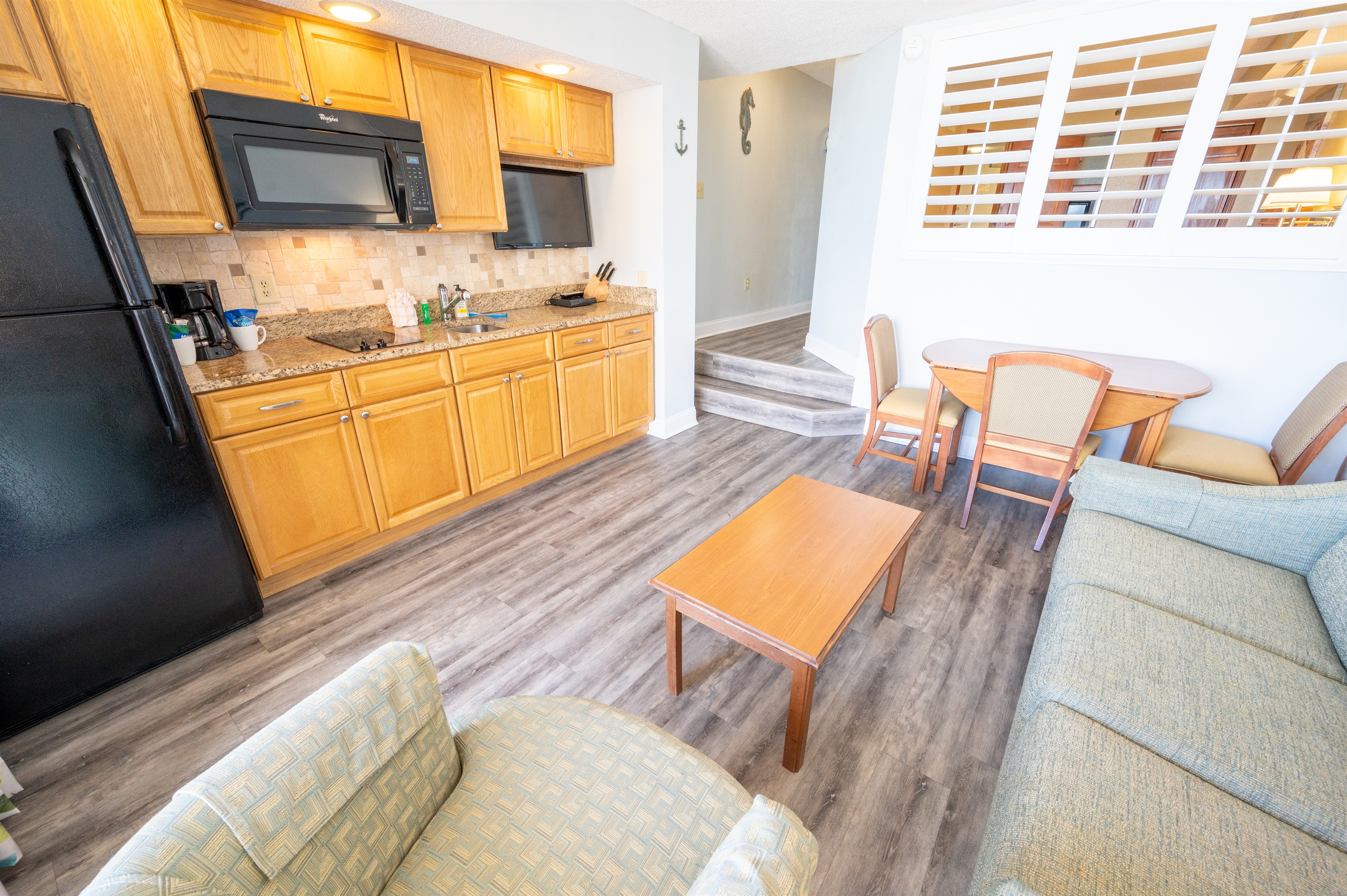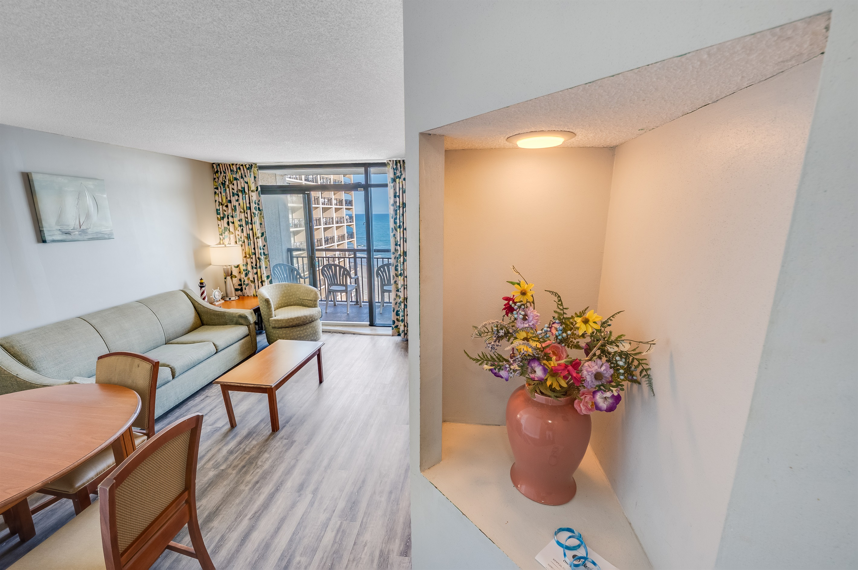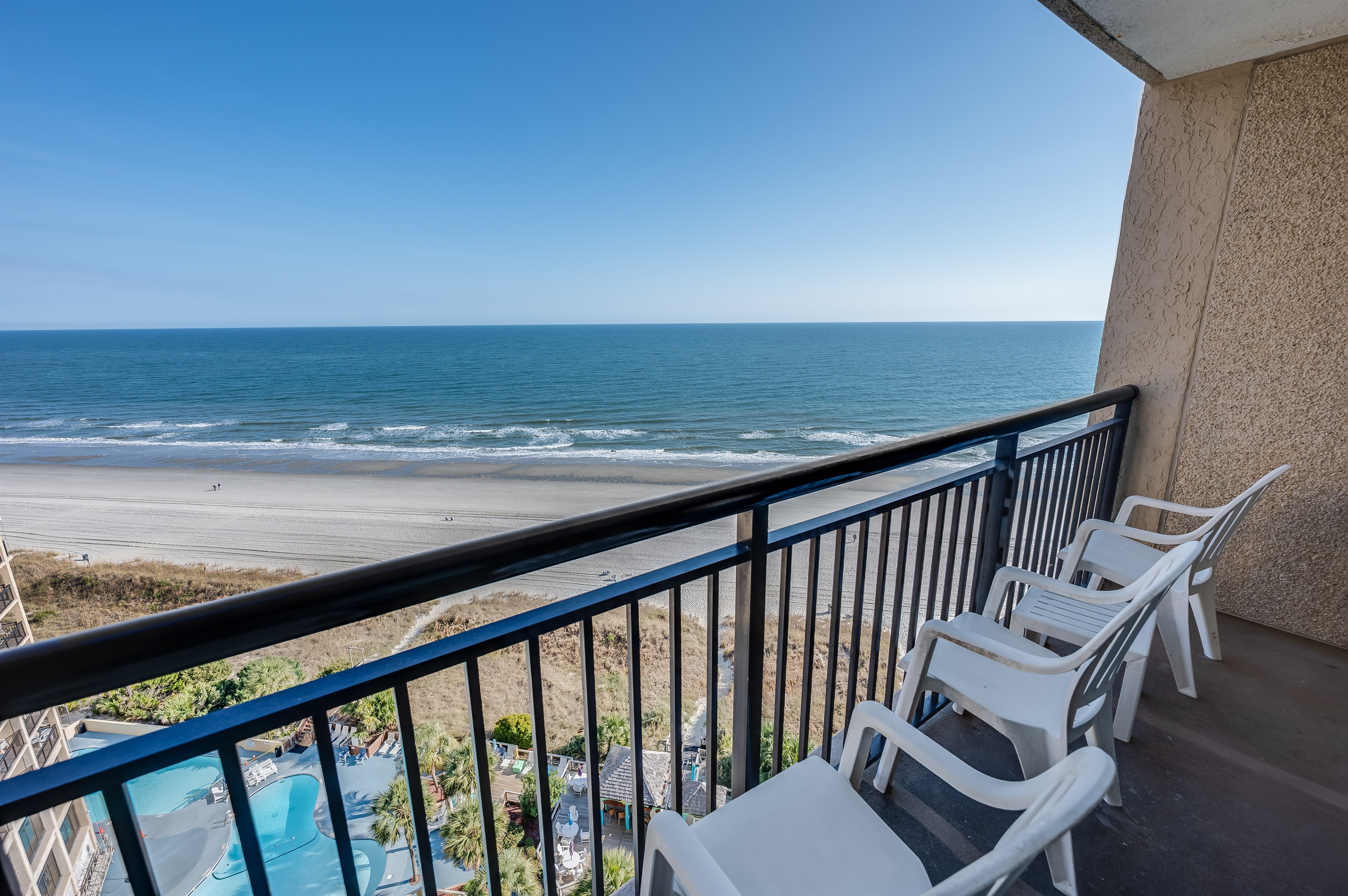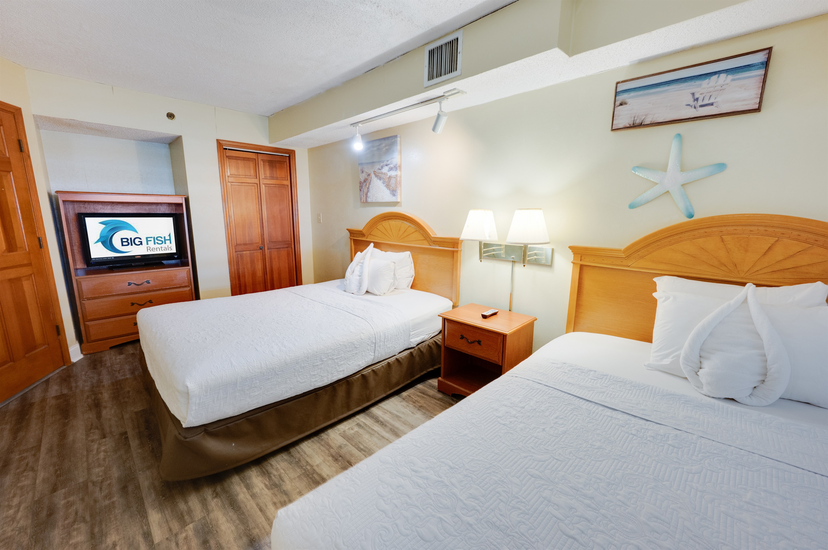 Beach Cove 1418 at Big Fish Rentals Walk into your Oasis! At Big Fish Rentals... Our modern beachfront condo is directly facing an amazing pool and ocean views for miles. This condo has modern appliances, HDTVs, a full-sized refrigerator and granite countertops. This condo is one of the newest listings! Welcome to your Beach Paradise with views of the ocean from almost anywhere in the condo! Brand new window treatments and shutters to sleep in (if needed). The kitchen is also stocked with any items you might need for your stay. The kitchen is open to the living area which includes a dining table with 4 chairs, a sofa that pulls out into a bed, and an accent chair all with a view of the ocean. The condo sleeps up to 6 and has one bedroom (two queen beds), one bathroom, and a separate living area (with a sofa bed), which is open to the kitchen. From the living area, you can walk out to the balcony overlooking the tropical resort pool deck and ocean. This is our favorite spot for morning tea or coffee while you inhale the salt air! The bath has a double vanity to speed up getting ready for your day's activities or date night! Beach Cove is the perfect location for everything Myrtle Beach has to offer. There are many restaurants and attractions within walking distance. Directly across the street is Barefoot Landing, House of Blues, and Alabama Theater. Beach Cove is at the southernmost tip of North Myrtle Beach so both central Myrtle and North Myrtle activities are just a quick drive away. Beach Cove offers lots of amenities. An outdoor tropical oasis includes three outdoor heated pools (two heated seasonally, one year-round), three outdoor whirlpools, a kiddie pool, a lazy river, a shuffleboard and a poolside tiki bar serving food and drinks. There is an indoor pool and whirlpool. Please treat yourself to everything that our condo and Beach Cove have to offer, you won't regret it! This beachfront condo is situated in a great location with all the comforts of North Myrtle, but all the perks of Myrtle Beach. We have made this condo comfortable with all the extras you would expect in a beachfront condo and then some! This modern 1 Bedroom, 1 Bathroom sleeps 6 and has 2 beds in the main bedroom and a couch that folds out into a bed to sleep additional people in the living area. This condo has incredible views! Located on the 14th-floor, you can enjoy beachfront views from both the 14th-floor balcony as well as the living area. Enjoy the outdoor heated pools(even in the offseason), lazy river, shuffleboard, and a cold cocktail at the outdoor Tiki Bar. There are tons to do here onsite! Within walking distance to many local restaurants (Hamburger Joes has amazing hamburgers and wing specials) as well as Barefoot Landing, House of Blues and Alabama Theater. Many championship golf courses are a short drive away! Relax by the many pools, enjoy the views, take in the salt air as you stroll on the beaches, enjoy the balcony in the evenings as you take in all the sounds of nature from the ocean, there is so much to do! We hope that you will enjoy our condo as much as we do. Note: You will not have access to the Indoor Bar/Game Room area. - All pools and Spas are open from 8 am to 11 pm - Tower A & B pools are heated - All Spas are heated and open Important Notice: - There is an ongoing structural maintenance taking place at the resort, focusing on the balconies and exterior columns. Construction crews will be working on different sections of the building. Guests may experience some construction noise during the day. Workers may also be on exterior scaffolding, temporarily obstructing some views. For privacy, guests can close curtains when crews are nearby. Please expect possible noise, and pool shut off, and limited access to the balconies during operation hours for safety purposes. Note: Starting January 1, 2026 Motorcycles is no longer allowed to park onsite.