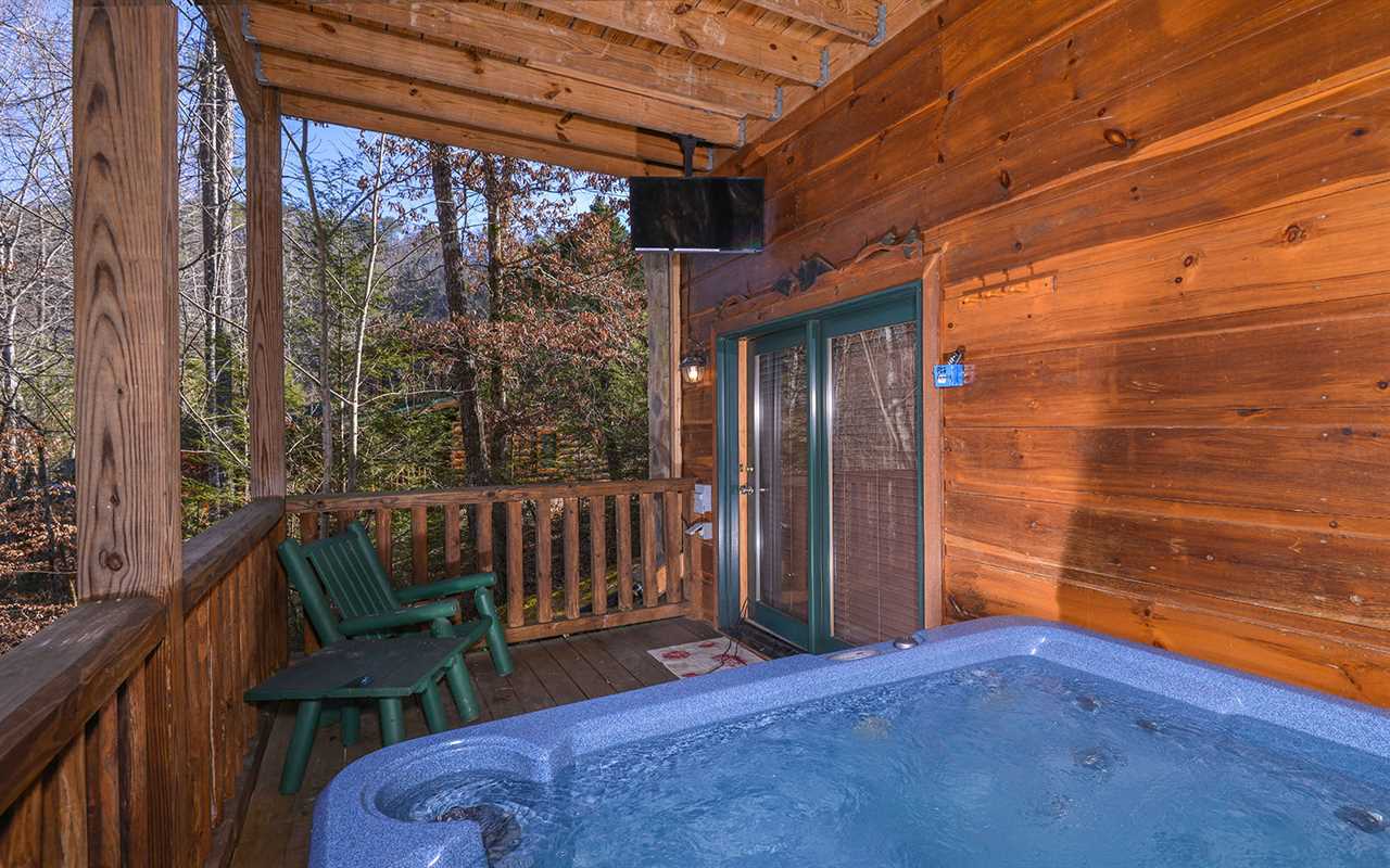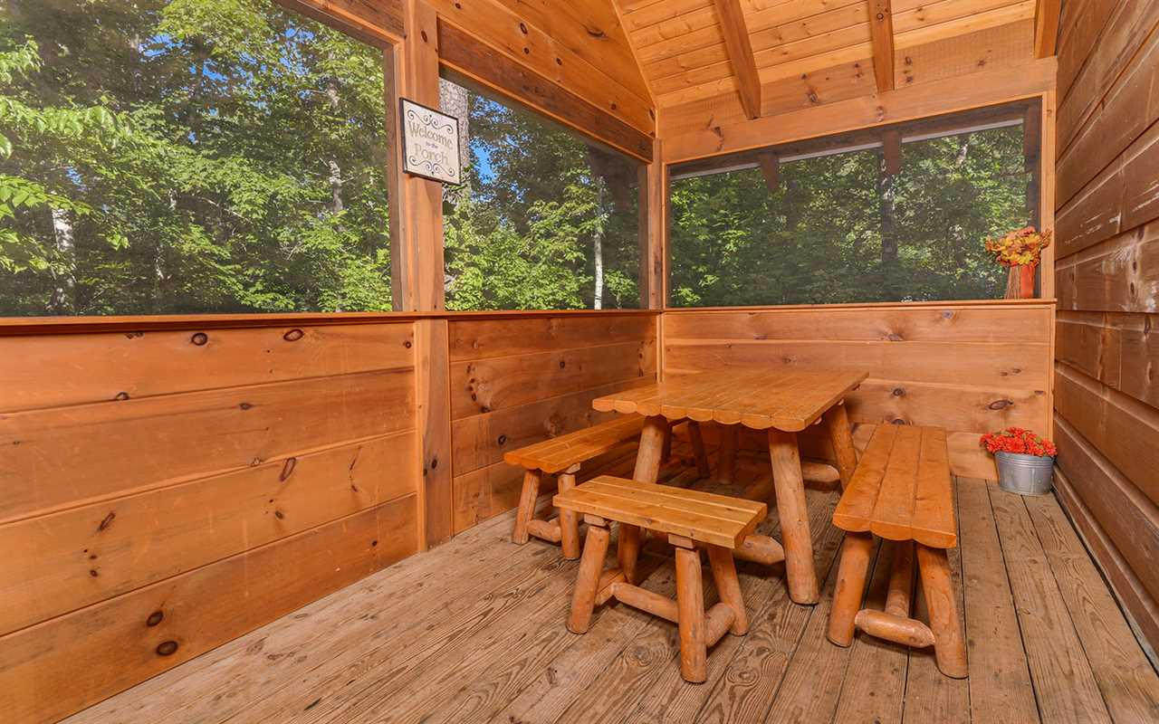 Outdoors, roast marshmallows around the firepit, soak tired muscles in the steamy hot tub with entertainment on the outdoor TV, sway on the porch swing or rocking chairs with a riveting novel, cook out on the charcoal grill, and dine at the picnic table under the sun or on the screened-in porch while enjoying the wooded views.