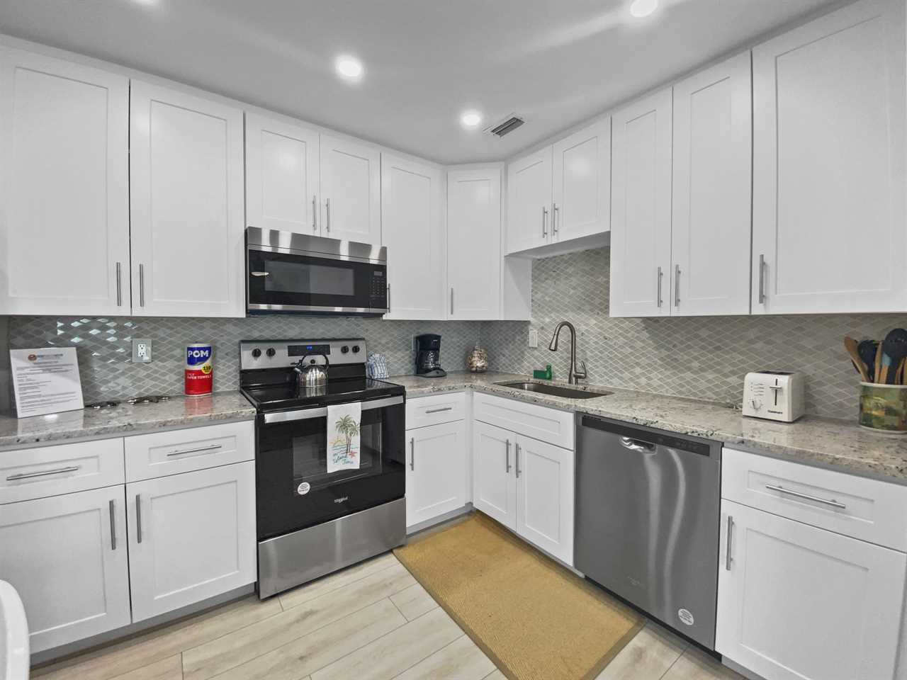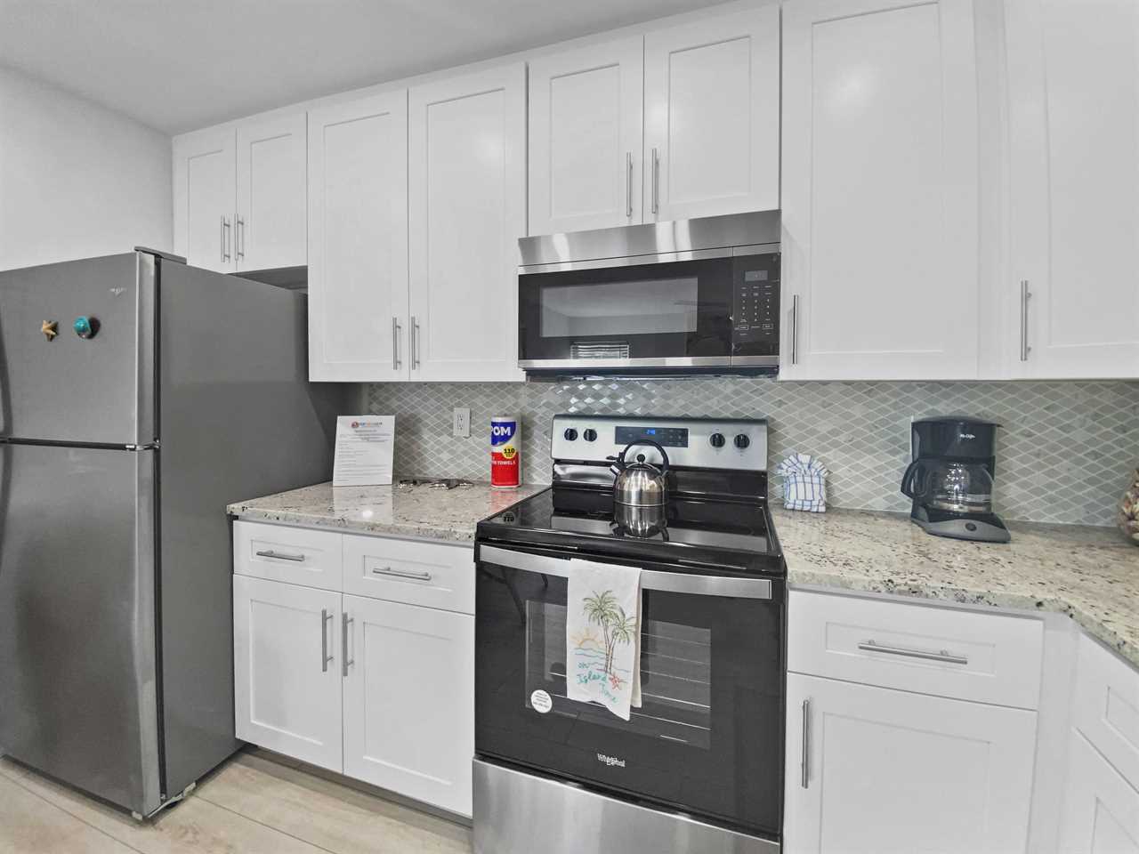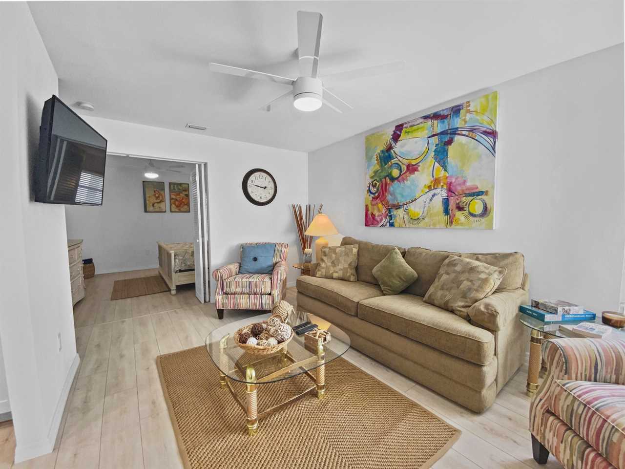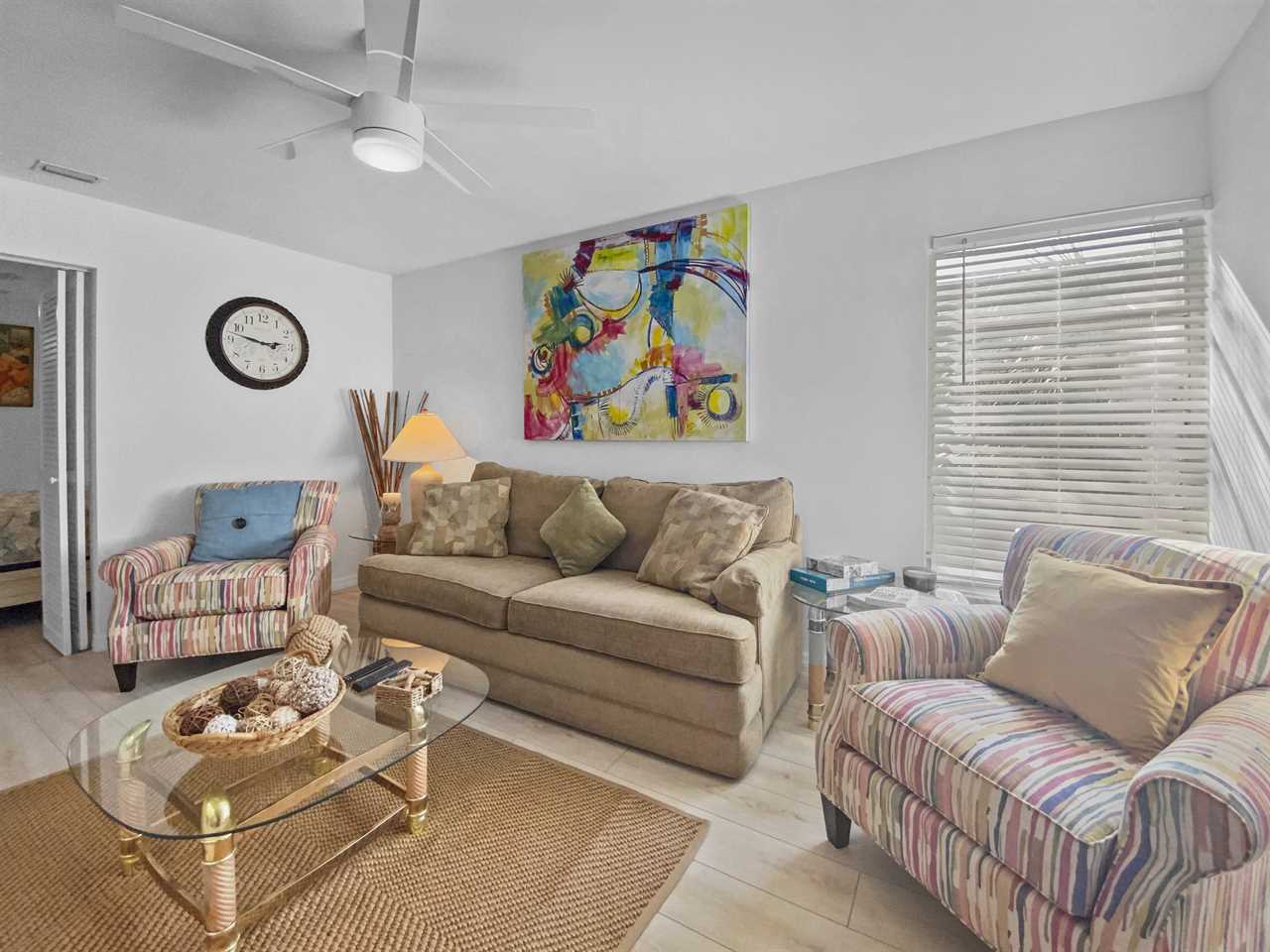 Welcome to Siesta Beach House Unit #105, your beachside vacation condo that has now been fully renovated in preparation for accommodating you!! The Siesta Beach House community has direct beach access, community heated pool, 1/4 mile from Siesta Key Public Beach with tennis courts, picnic pavilions, and playground. Siesta Key has become popular for its soft white sand beaches and island life. Utilize any one of the many free ride (tips only) services on the island or the free island shuttle to visit Siesta Key Village and the expanding south village offering a great selection of restaurants, shopping, and island nightlife. This unit has all the amenities you need to be in a clean, comfortable, 1 bedroom unit that has direct beach access. Arrive anytime after 4pm and start your vacation immediately as if it were your very own vacation home; no check-in procedure, no keys to pickup! After parking in your designated parking spot directly in front of your building, walk up the stairs from the parking lot to find the unit on the second floor. You will enter into the living room furnished with comfortable lounge seating for 4 and equipped with flat screen TV. The sofa pulls out into a full sized mattress for you to fit your guests. Just around the corner you will find the kitchen with all major appliances available for your use, among other small kitchen appliances. The eat-in style kitchen is stocked for light to medium cooking needs and offers seating for 3, possibly 4. Back through the living room, in the rear of the unit, you will find a bedroom furnished with a King sized mattress, dresser, and equipped with flat screen TV. Adjacent to the bedroom is the bathroom equipped with tub/shower for your use! Service Highlights: - Professionally laundered linens & towels with each reservation. - Exceptional clean rating. - No keys to pickup or check-in process, simply arrive and enjoy your stay. - Inspection prior to arrival to ensure all mechanics of the home are fully functional.