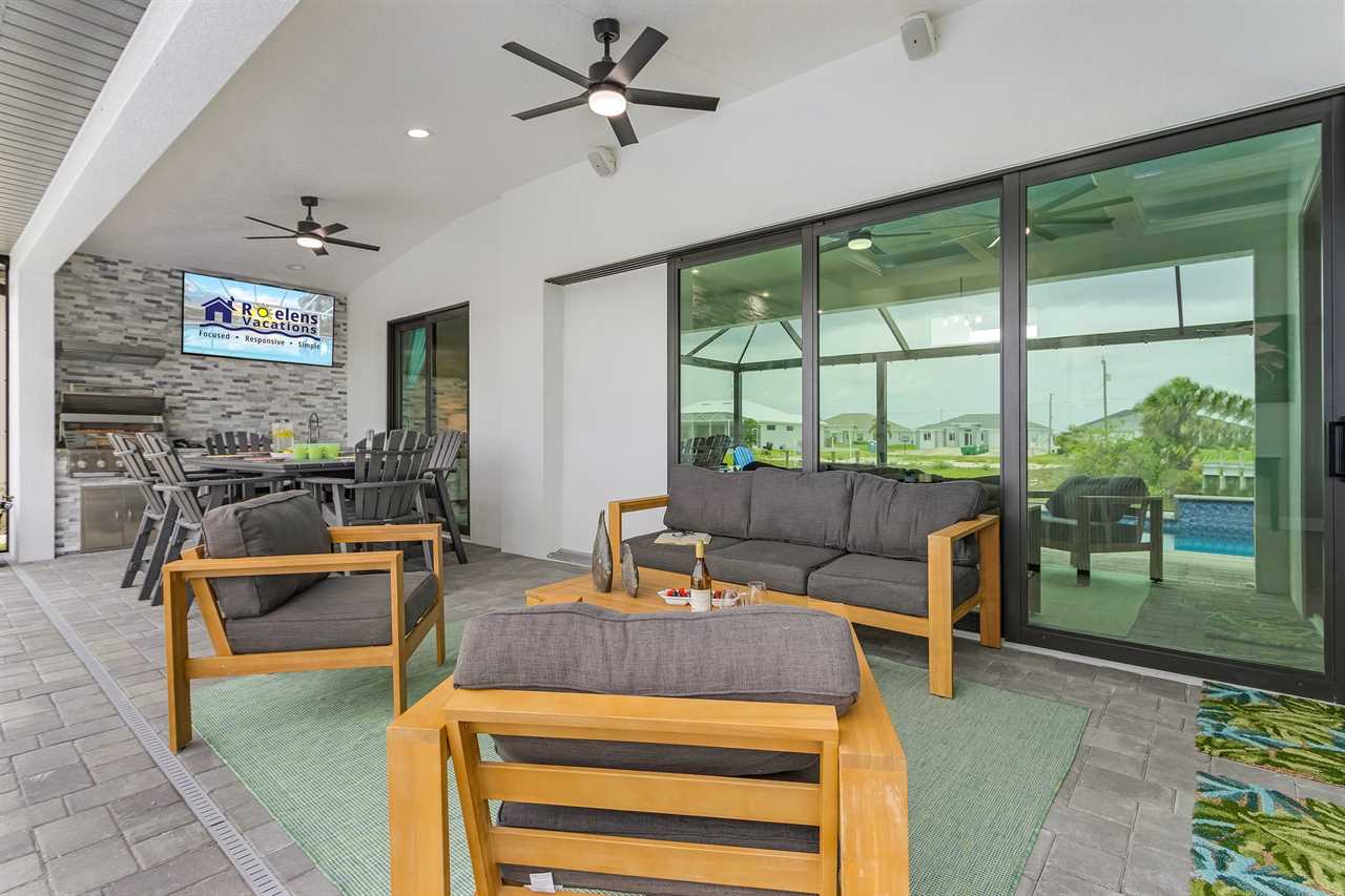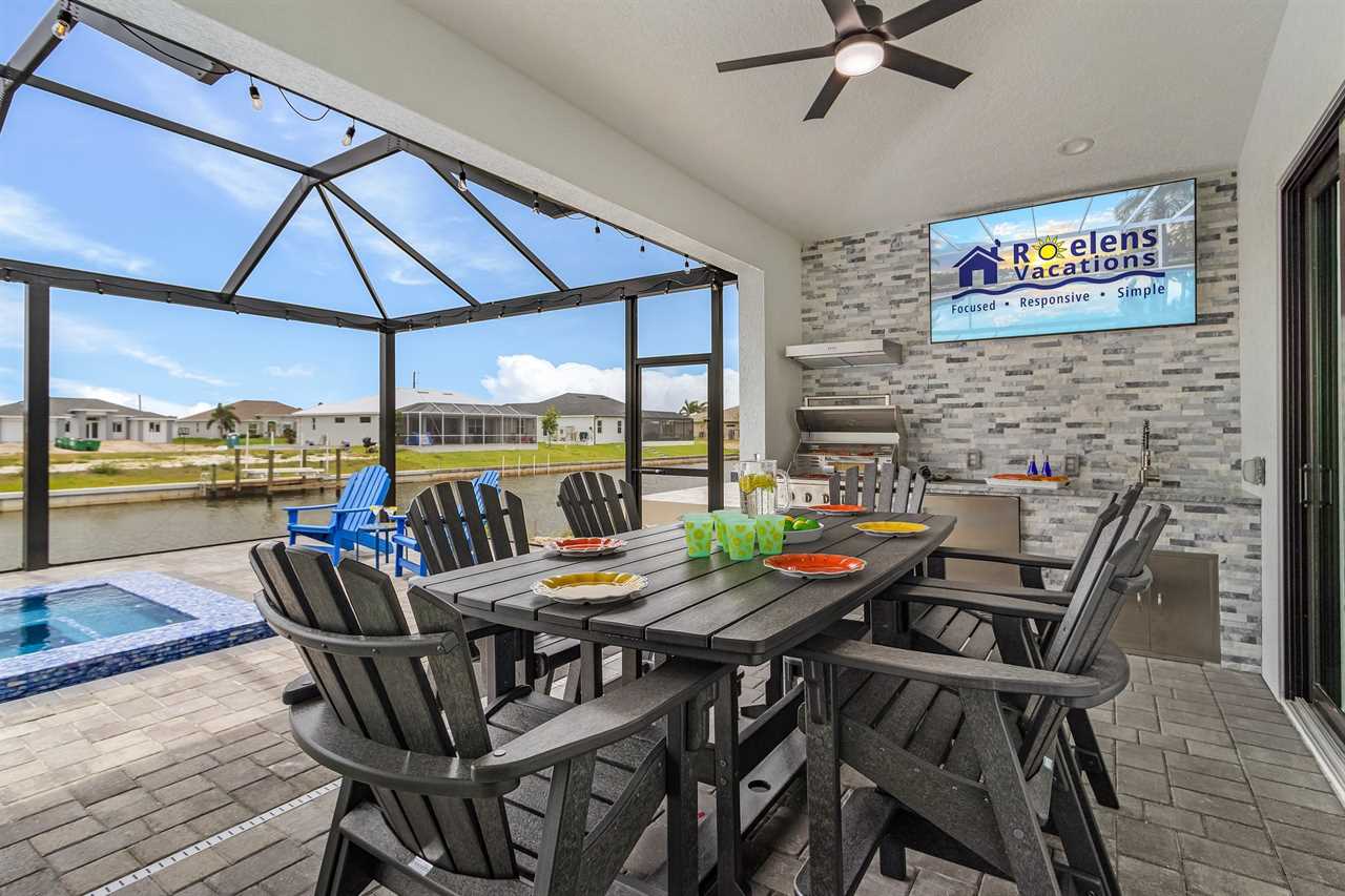 Screened Lanai with TV: Kick back on the lanai, catching up on your favorite shows while enjoying the tropical breeze and waterfront views.